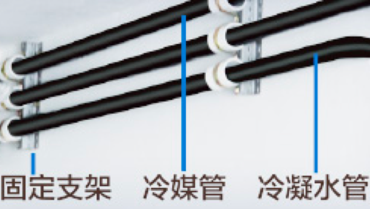 1.冷媒管安装要求横平竖直,冷凝水管安装要求有1/100倾斜坡度。