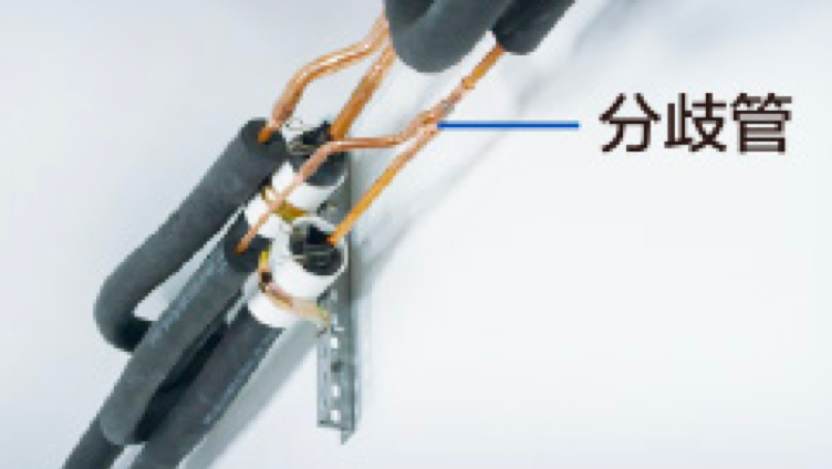 多联机系统中,各个管路连接处采用分歧管连接。分歧管只允许水平或垂直安装,禁止侧放或斜放,请务必确认。