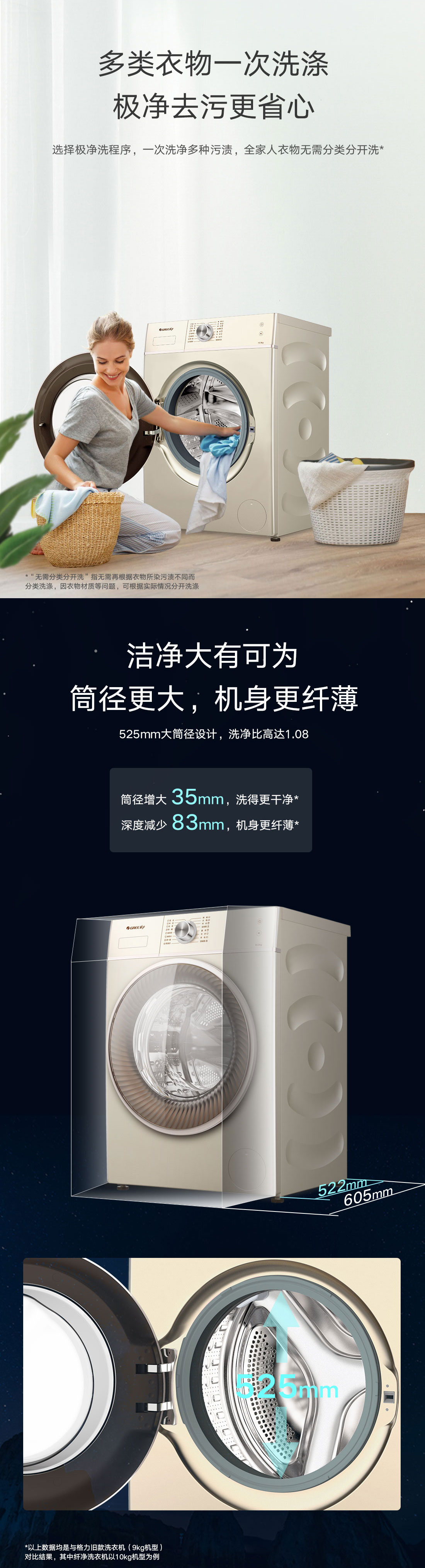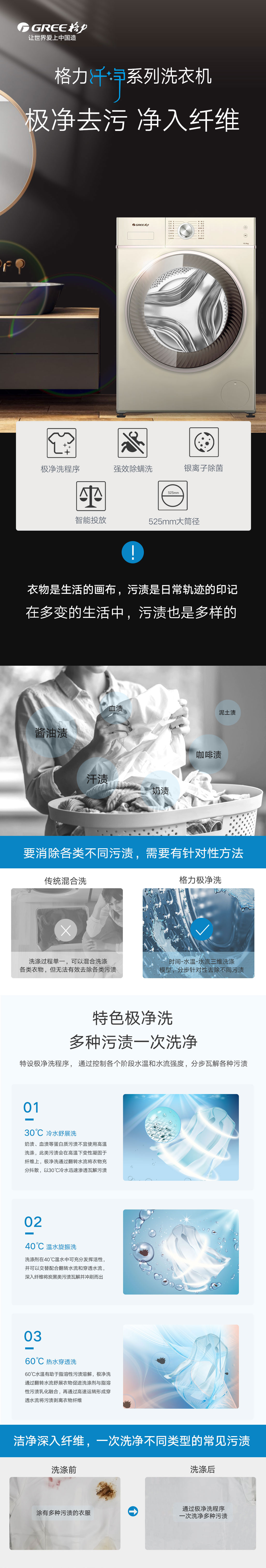 极净去污,一次洗净多类污渍,全家人衣物无需分类分开洗。