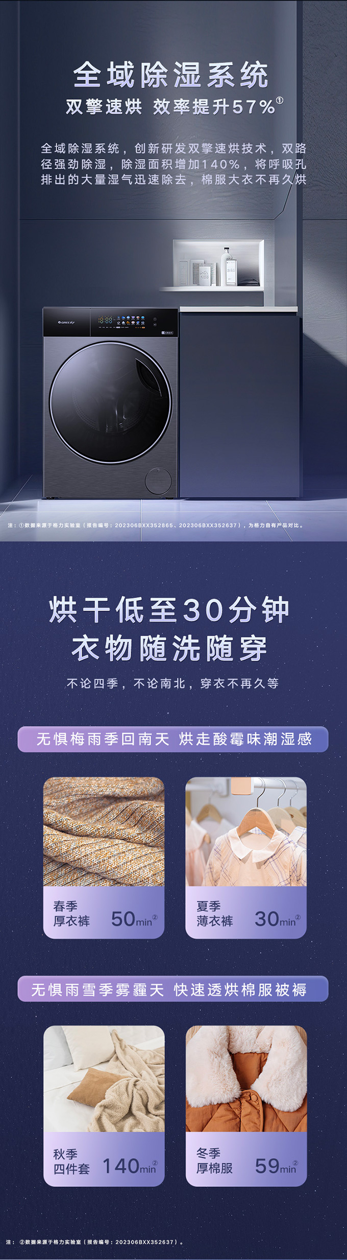全域透气烘,衣物不在闷着烘。AI智能感应,脏污一键洗净。