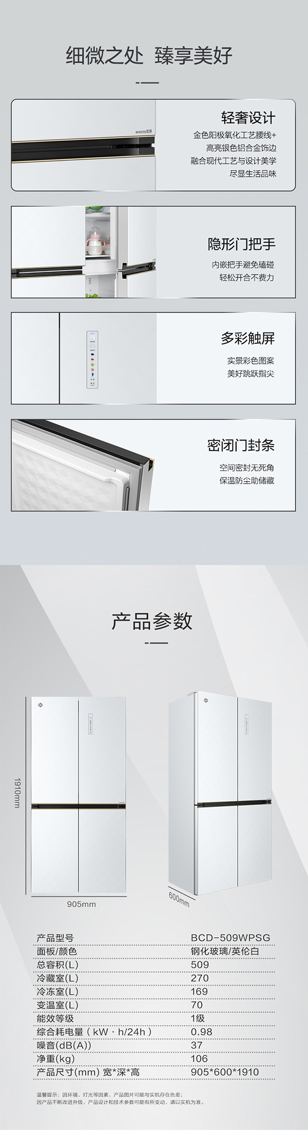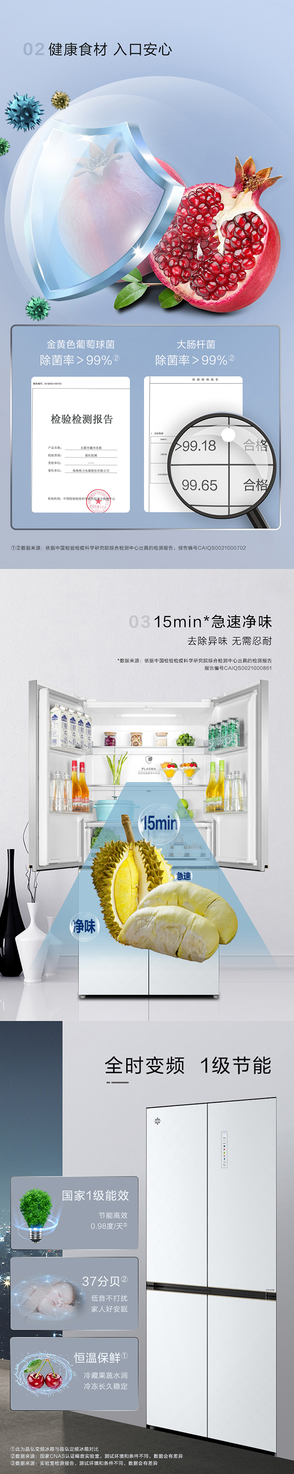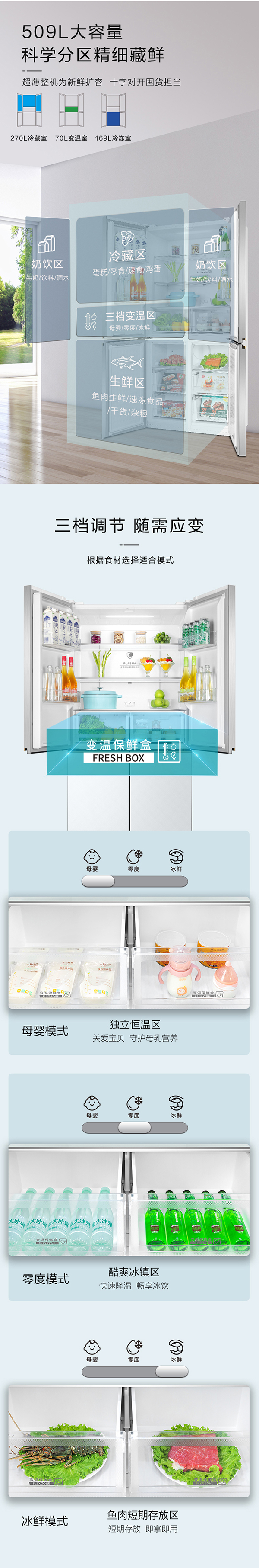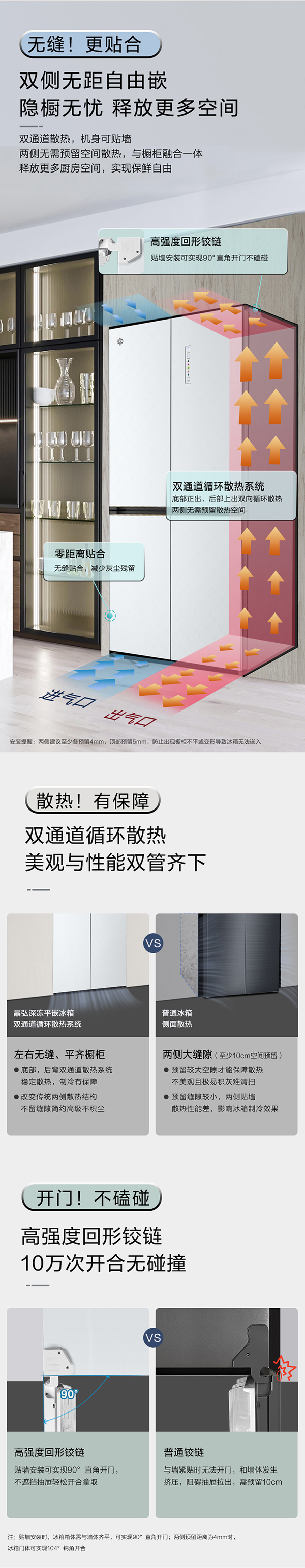 -33摄氏度深冻储鲜;PLASMA全空间除菌净味;平齐不凸出;双通道循环散热