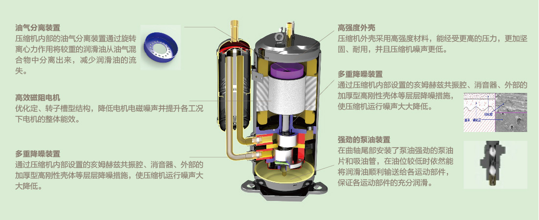外机、内机均采用直流电机,相对普通电机效率提高30%以上;电机在高温高湿环境下能持续稳定运行,内电机在-20℃~40℃、外电机在-20℃~60℃范围内均可持续稳定运行。 |